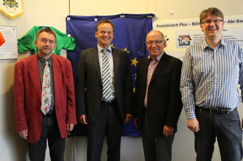 „Als Präsident des Eurodistrikts liegt mir der Ausbau der deutsch-französischen Beziehungen besonders am Herzen“, betonte Scherer. Die Grundlage für grenzüberschreitende Zusammenarbeit sei, die Sprache der Nachbarn zu verstehen. „Wir werden nicht locker lassen, bis wir es schriftlich haben, dass es für Abibac-Gymnasien die Wahlmöglichkeit gibt, auch schon in der fünften Klasse zwei Fremdsprachen zu erlernen“, sagte der stellvertretende Schulleiter und Abibac-Koordinator Dr. Volker Wacker. Ohne Ausnahmeregelung würde das Gros der Fünftklässler Englisch als erste Fremdsprache wählen und damit nicht direkt an das Grundschulfranzösisch anschließen. Diese einjährige Pause im Französischunterricht sei völlig kontraproduktiv.
