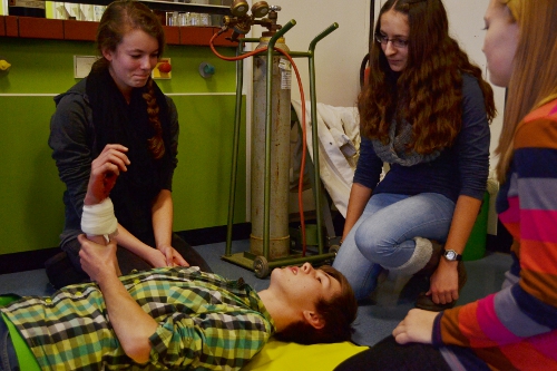 Der seit einem Jahr am Hans-Furler Gymnasium in Oberkirch bewährte Schulsanitätsdienst erhält eine neue Generation ausgebildeter Schulsanitäterinnen und Schulsanitäter. Nachdem die interessierten und engagierten Jungen und Mädchen aus den achten und neunten Klassen ausgewählt wurden, erfolgte zuerst die Ausbildung in Form eines großen Erste-Hilfe-Kurses unter der Leitung von Sigrid Kimmig vom DRK Oberkirch. Im Anschluss daran wurde vergangene Woche erstmalig eine Schulsanitätsprüfung durchgeführt. Die angehenden Schulsanitäter mussten an verschieden Stationen mit gestellten Unfallen ihr gelerntes theoretisches Wissen in die Praxis umsetzen. So mussten Verbrennungen, Stürze oder auch nur eine vermeintlich harmlose Magen-Darm Grippe richtig erkannt und die entsprechende Erste Hilfe geleistet werden.