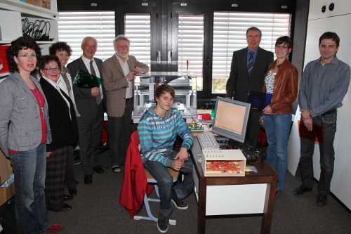 NWT-Lehrer Paul Singler, der den Sponsoren die Maschine vorstellte, betonte, dass damit der Unterricht eine neue Dimension gewinne: Mussten die Schüler bisher Bauteile für ihre Projekte manuell herstellen, können sie diese nun am PC konstruieren und die Maschine fräst die Bauteile.