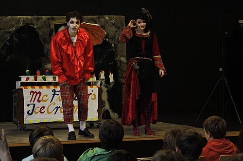Mit viel Witz und schauspielerischem Talent präsentieren die zwei sympathischen Engländer, die sich in Windeseile in die verschiedensten Figuren verwandelten, die Geschichte eines Vampir-Jungen, der ganz zum Leidwesen seiner Eltern lieber Eis statt Blut zu sich nimmt. Und das, obwohl ihm als Sohn der alt eingesessenen, vor 800 Jahren aus Transsylvanien nach Schottland immigrierten Familiendynastie der McVamps die beste Bildung, der teuerste Sarg als Ruhestätte und die beste Ernährung, das frischeste Blut, geboten wurden.