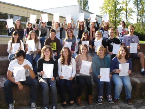27 Schülerinnen und Schüler der Klassen 9 und 10 nahmen dieses Jahr an der Sprachprüfung „DELF scolaire“ (Niveau B1) teil. Alle Teilnehmer/innen haben die Prüfung bestanden und konnten nun das Zertifikat des französischen Erziehungsministeriums in Empfang nehmen. Sowohl im schriftlichen Teil – bestehend aus Aufgaben zum Hör- und Leseverstehen sowie zum freien Schreiben – als auch in der mündlichen Prüfung, die von französischen Muttersprachlern abgenommen wurde, konnten die Schüler/innen des HFG überzeugen. Es waren einige hervorragende Ergebnisse zu verzeichnen. Herzlichen Glückwunsch! (Text: Schaut, Foto: Archiv HFG).